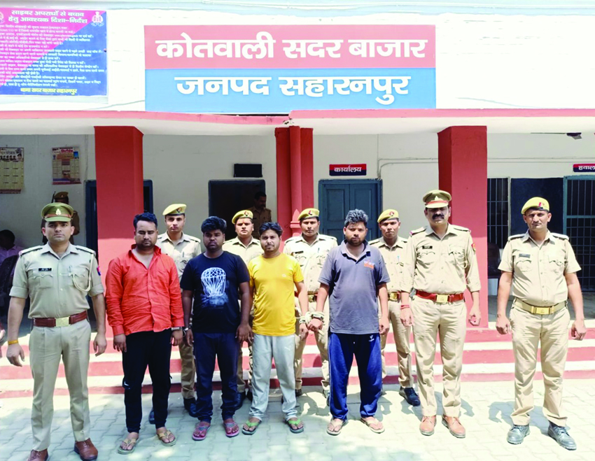 सहारनपुर। थाना सदर बाजार,सहारनपुर पुलिस द्वारा रेलवे कर्मचारी की हत्या मे वांछित 04 अभियुक्तगण गिरफ्तारकिया है। पुलिस से मिली जानकारी के अनुसार थाना सदर बाजार क्षेत्रान्तर्गत 15.अप्रैल.2022 की रात्रि मे रेलवे कर्मचारी मुकेश कुमार के साथ कालोनी व आस पास के लोगो द्वारा मारपीट करने के बाद मृत्यु हो गई। उक्त मामले में 17 अप्रैल को मृतक की माता उमा देवी पत्नी स्व0 रामनारायण नि0 वेद विहार थाना सदर बाजार सहारनपुर की लिखित तहरीर के आधार पर मु0अ0स0 220/22 धारा 302 भादवि अधि0 बनाम रोहित कश्यप आदि 04 नफर नामजद के विरूद्ध पंजीकृत कराया गया । अपराध की गम्भीरता को देखते हुए वरिष्ठ पुलिस अधीक्षक जनपद सहारनपुर के निर्देशन में व पुलिस अधीक्षक नगर, सहारनपुर एवं क्षेत्राधिकारी नगर द्वितीय के कुशल पर्यवेक्षण मे वांछित अपराधियो की गिरफ्तारी हेतू तत्काल टीमे गठित कर प्रभारी निरीक्षक हरेन्द्र सिह थाना सदर बाजार द्वारा मय पुलिस टीम के त्वरित कार्यवाही करते हुए 17/18-04-2022 की रात्रि में मुखबिर की सूचना के आधार पर रात्रि समय 00.30 बजे आईटीसी रोड फाटक तिराहे के पास से मुकदमा उपरोक्त मे नामजद व वांछित सभी चार अभियुक्तगण को गिरफ्तार किया गया । अभियुक्तगण से की गयी गहन पूछताछ पर स्पष्ट हुआ कि अभियुक्त रोहित कश्यप मृतक मुकेश से शराब पिलाने की मांग करता था मृतक द्वारा कई बार अपने पैसो से रोहित कश्यप को शराब पिला दी गयी थी किन्तु रोहित अपने दोस्तो को भी मुफ्त मे शराब पिलाने की मांग करता था जिससे कुछ दिन पूर्व मृतक द्वारा मना कर दिया गया था इसी बात को लेकर रोहित कश्यप की मृतक से नोक झोक हुई थी इसी बात का बदला लेने के लिए 15.04.2022 को अभियुक्तगण द्वारा मृतक के साथ मार पीट की गयी सडक पर बार बार पटकने एवं मारपीट के कारण मृतक को आयी चोटो से उसकी मृत्यु होना पाया गया । गिरफ्तार अभियुक्तगणो ंने अपना नाम व पता रोहित कश्यप पुत्र मैनपाल निवासी रमेशनगर थाना सदर बाजार जनपद सहारनपुर। टीटू पुत्र राजेन्द्र निवासी वेद विहार थाना सदर बाजार जनपद सहारनपुर । नीशू पुत्र सहीराम निवासी कोरी माजरा थाना सदर बाजार सहारनपुर । सुनील उर्फ मोटा पुत्र सुरेन्द्र निवासी कोरी माजरा थाना सदर बाजार सहारनपुर बताया है।