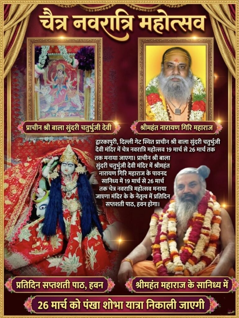 मंदिर के महंत गिरिशानंद गिरि महाराज के नेतृत्व में प्रतिदिन सप्तशती पाठ, हवन होगा 26 मार्च को पंखा शोभा यात्रा निकाली जाएगी